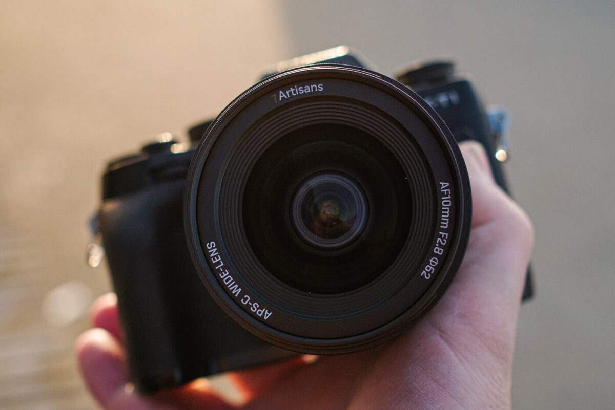 Was beim 7Artisans 10mm f2.8 direkt auffällt, ist die wertige Verarbeitung. Das Gehäuse besteht größtenteils aus Metall und fühlt sich angenehm hochwertig an. Gleichzeitig ist das Objektiv überraschend leicht. Es wirkt nicht wie ein massiver Brocken, sondern eher wie ein kompakter Spezialist, der gut zu kleineren Fuji-Kameras passt und sich auch auf längeren Spaziergängen nicht störend bemerkbar macht.